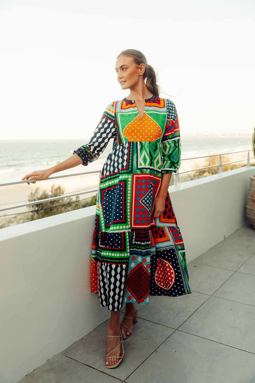 Discover effortless elegance with Adrift's Sabre V-Neck Dress in the vibrant Arthouse Print.