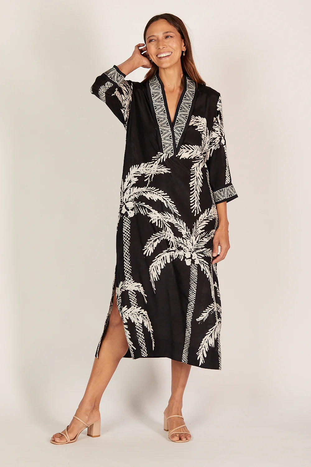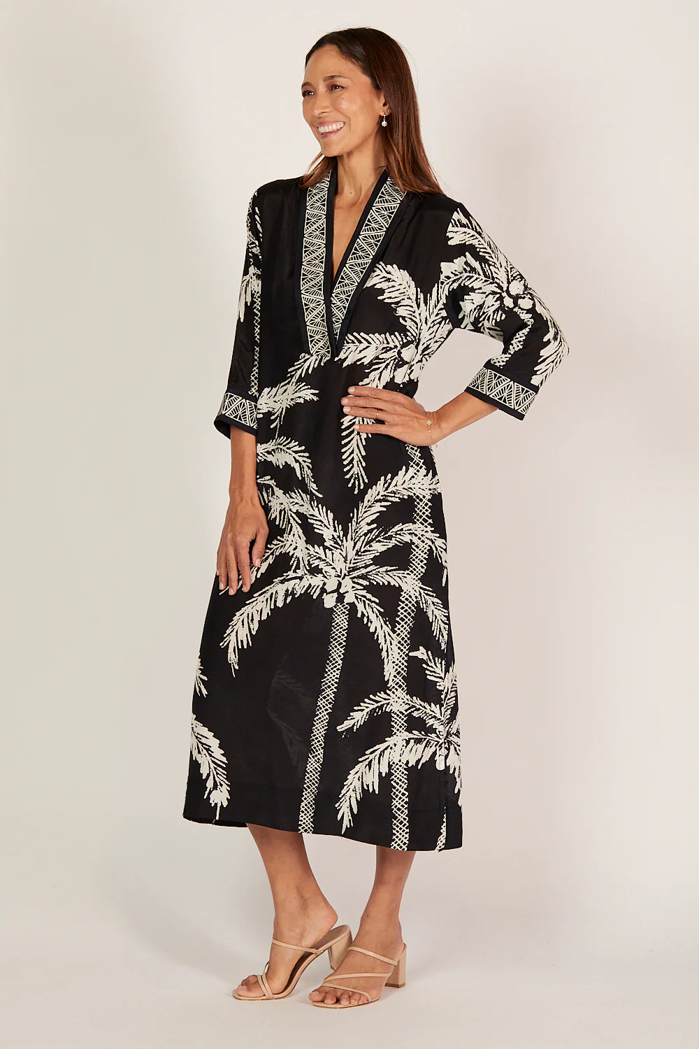 The ‘Tia Tunic Dress’ in Sunset Palms offers both comfort and style in one elegant piece!