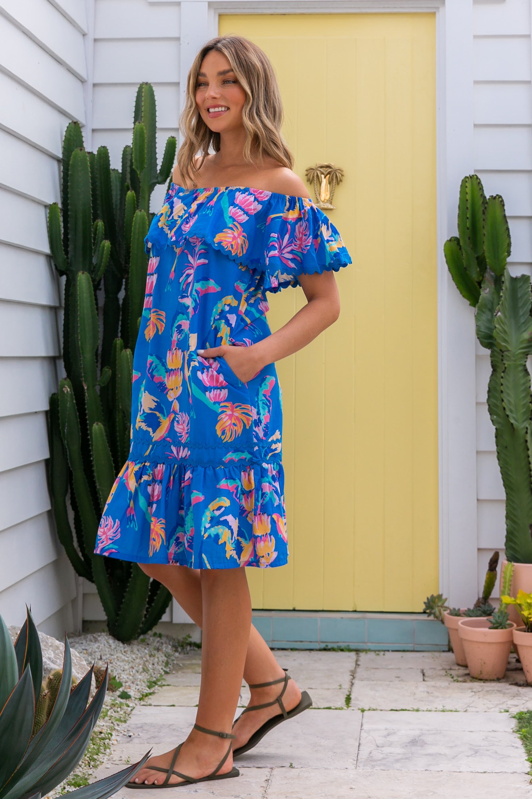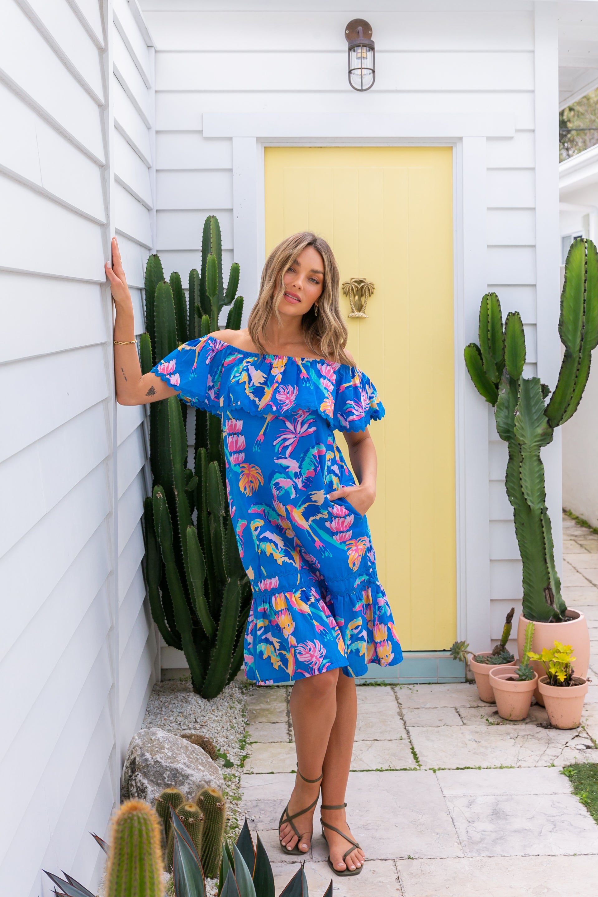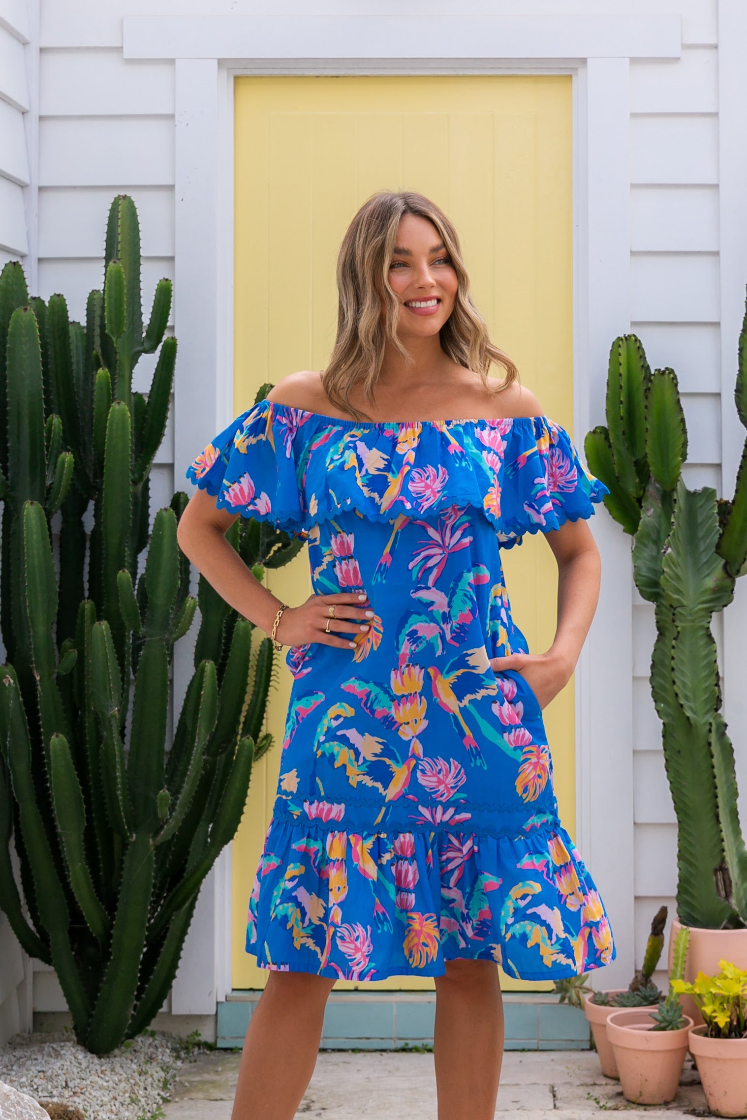 With its stunning blue color and refreshing summer print, the Turin Short Dress is the ideal summer wardrobe staple!